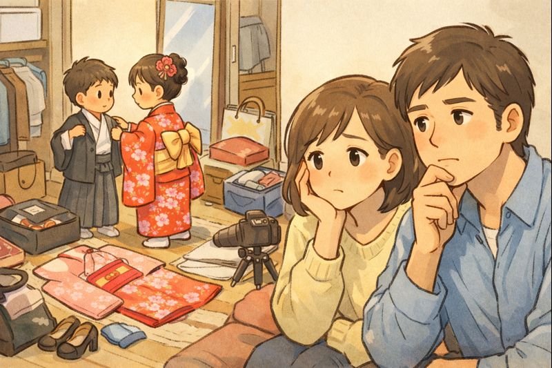 七五三の朝、子どもの着替えや荷物で部屋がいっぱいになり、「こんなに狭かったかな」と感じた。普段は気にならないのに、行事の日だけ家が窮屈に思える。その感覚に、少しモヤモヤしている。